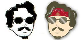 1998年より髭とバンダナをトレードマーク(イラスト参照)として活動していましたが,2018年6月にイメチェンしております.